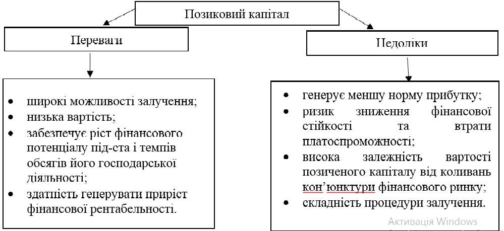 Рис. 1. Переваги та недоліки позикового капіталу підприємства